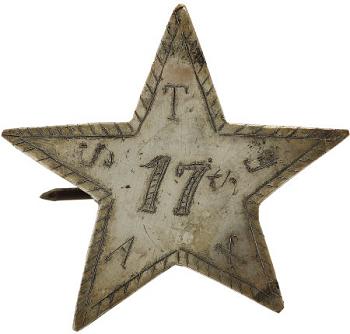 regimental flag, which still exists, and a 17th soldier’s tin Lone Star pin that